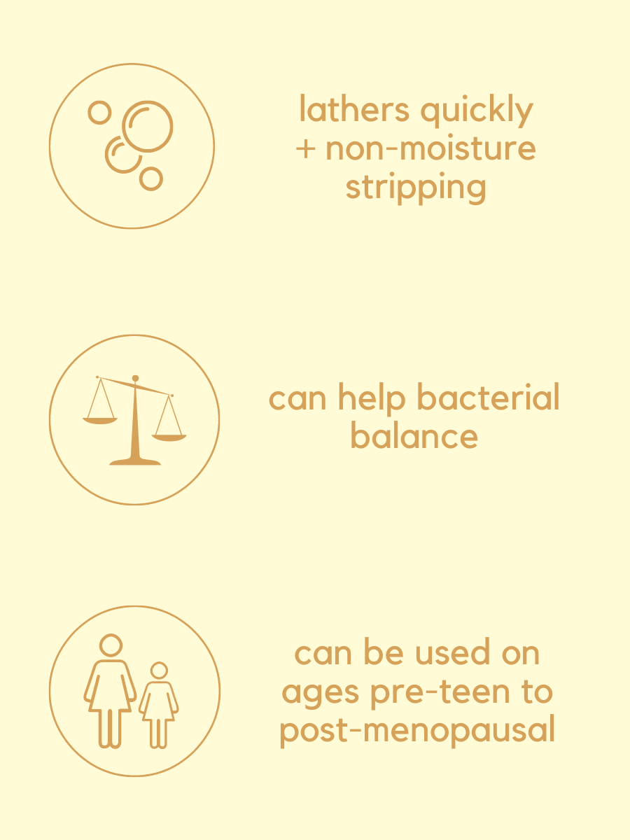 This super gentle, essential oil and extract-free formula contains apricot oil, which is naturally antibacterial and known for improving skin tone and keeping skin soft. It's also infused with aloe vera - which is excellent for soothing skin irritation and locking in moisture. Gently cleanse private-areas, body skin and facial skin with an artificial fragrance free, light floral scent.